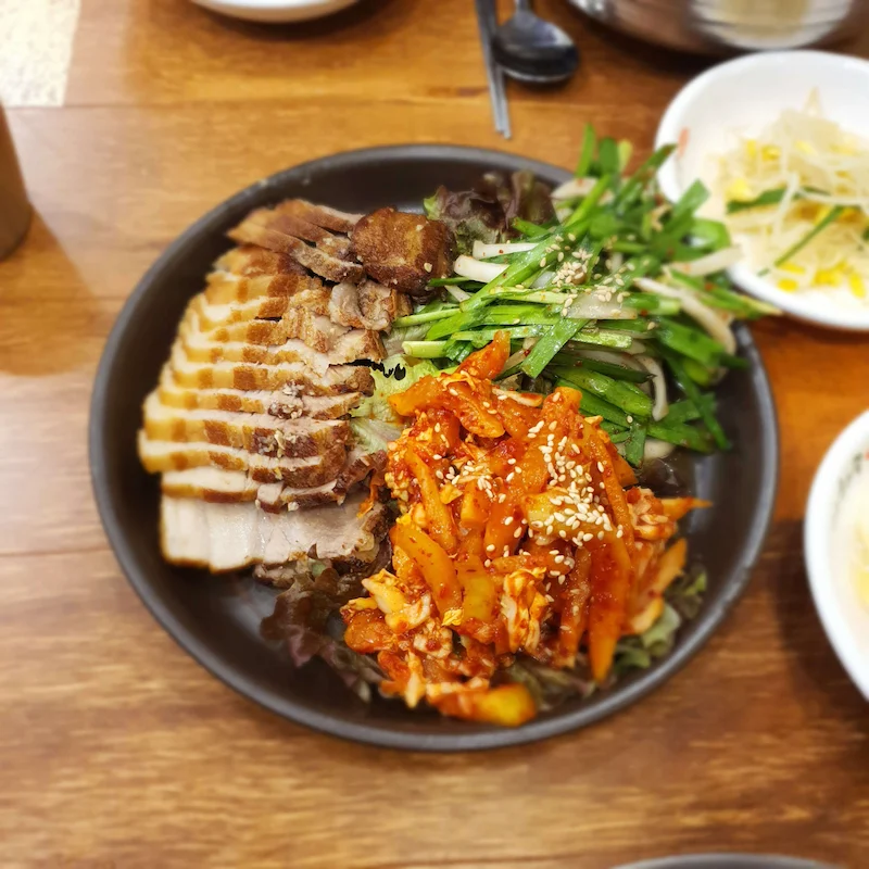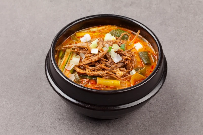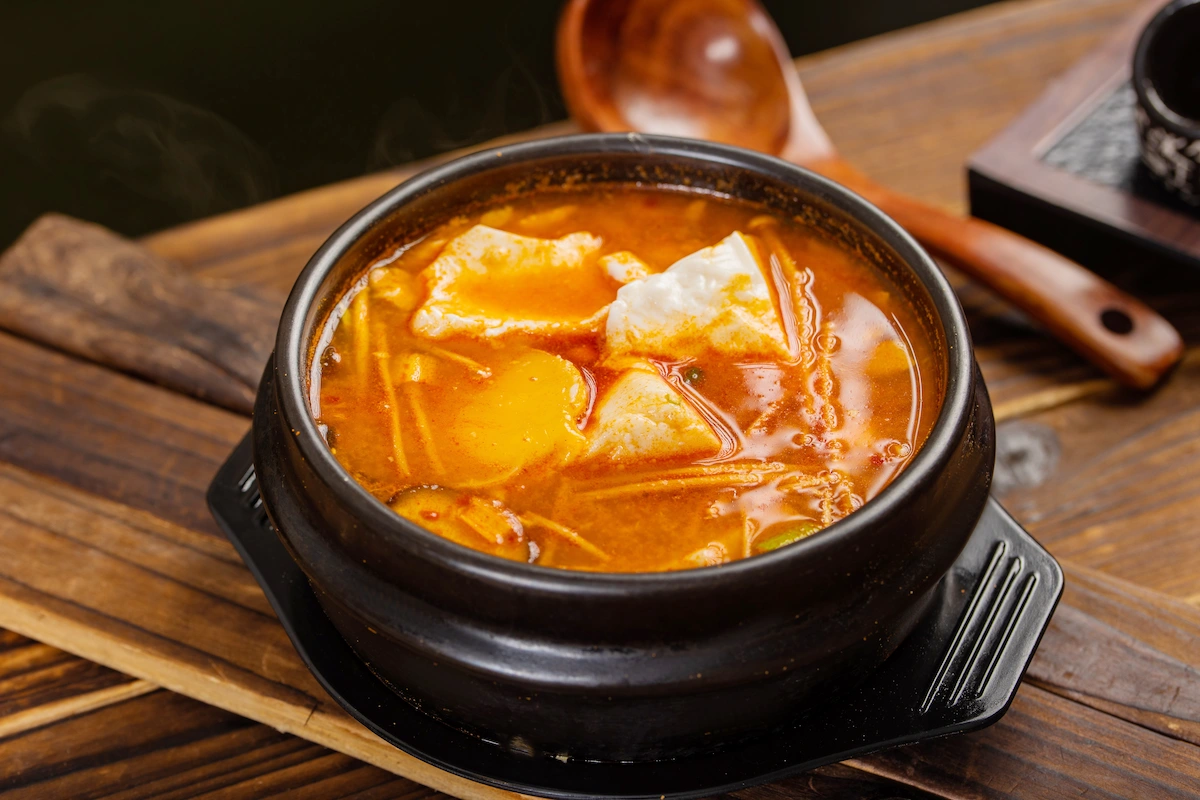 A classic Korean stew made with extra-soft tofu, vegetables, and your choise of protein simmered in a spicy, savory broth and served bubbling hot in a stone pot.